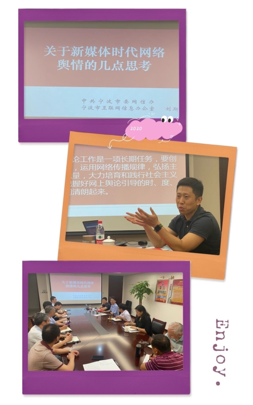 习近平总书记说:发生突发事件时,正是各方关注,需要提供权威信息发布、引导网上舆情的时候,决不能失语失声。面对日新月异的新媒体时代,为提高党员应对网络舆情的能力,7月14日,机关第四党支部利用“周二夜学”平台举办了一堂网络舆情讲座,市委网信办网管中心刘斯靓副主任受邀为全体党员干部授课。